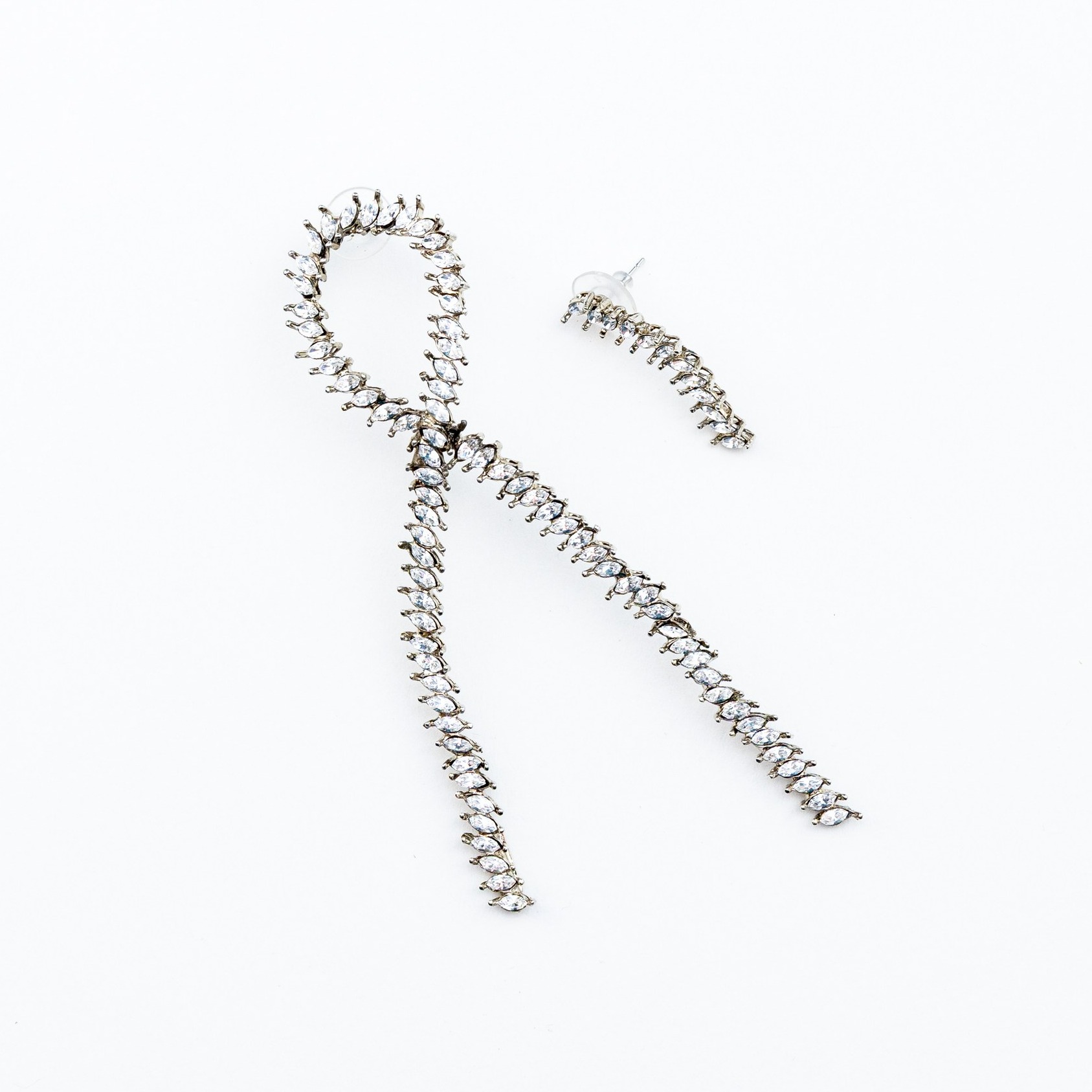 Асимметричные серьги ручной работы из латуни с покрытием из античного серебра и кристаллами Swarovski.