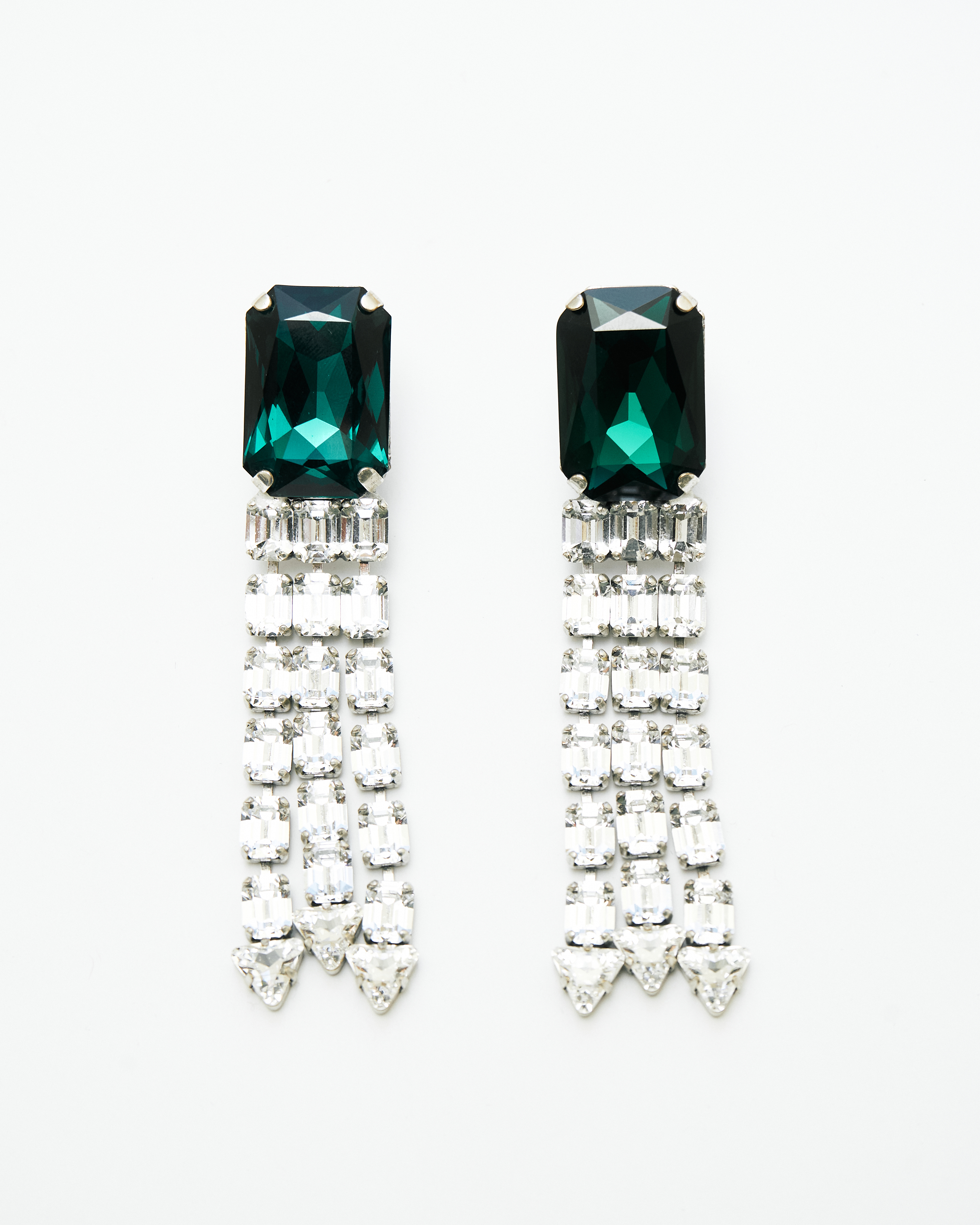 Камень: Кристаллы SwarovskiМатериал: ЛатуньКлипсы ручной работы из латуни с покрытием из античного серебра, с кристаллами Swarovski и лабораторными изумрудами.