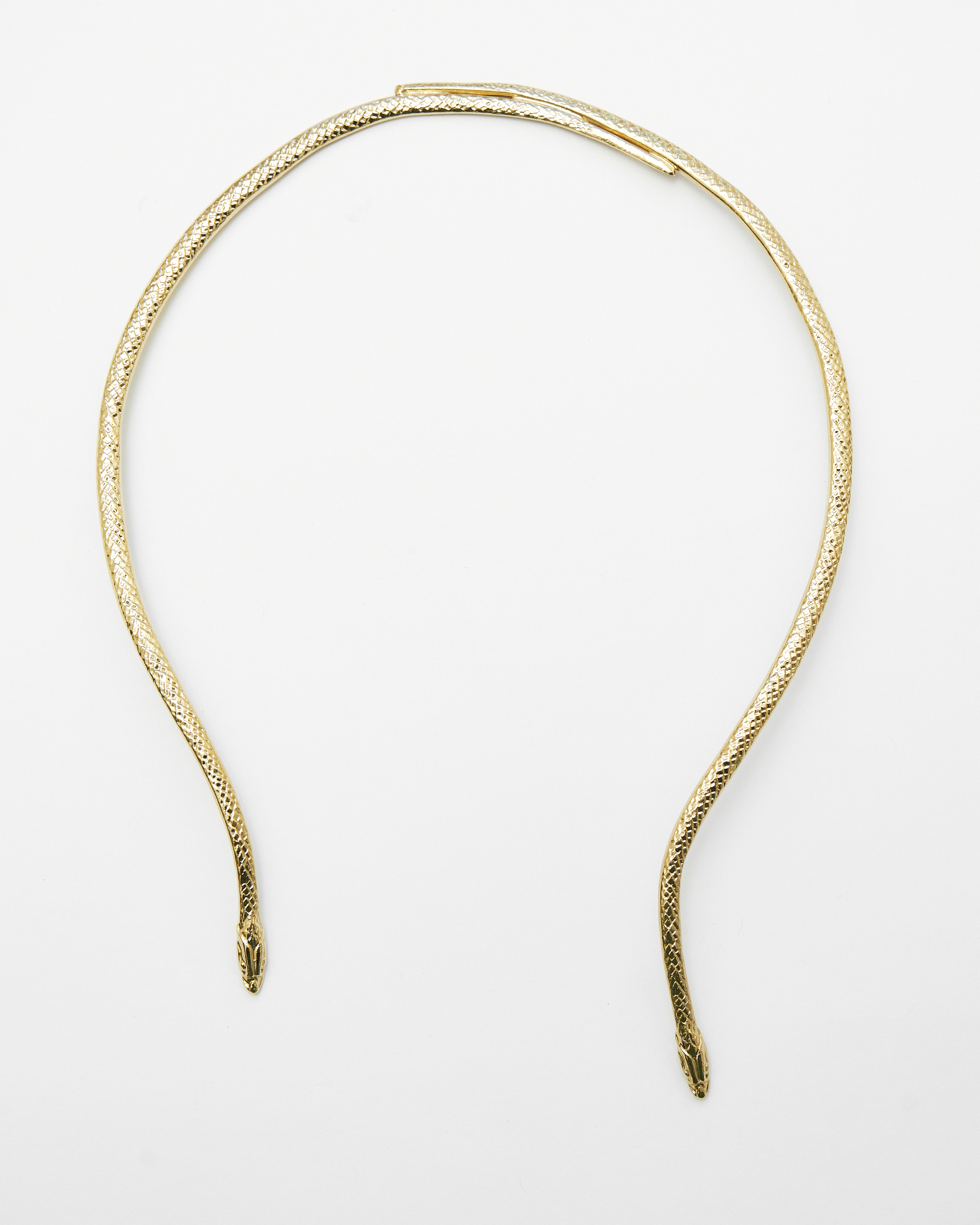 Колье-змея ручной работы из латуни с покрытием из 24-каратного золота и кристаллами Swarovski.