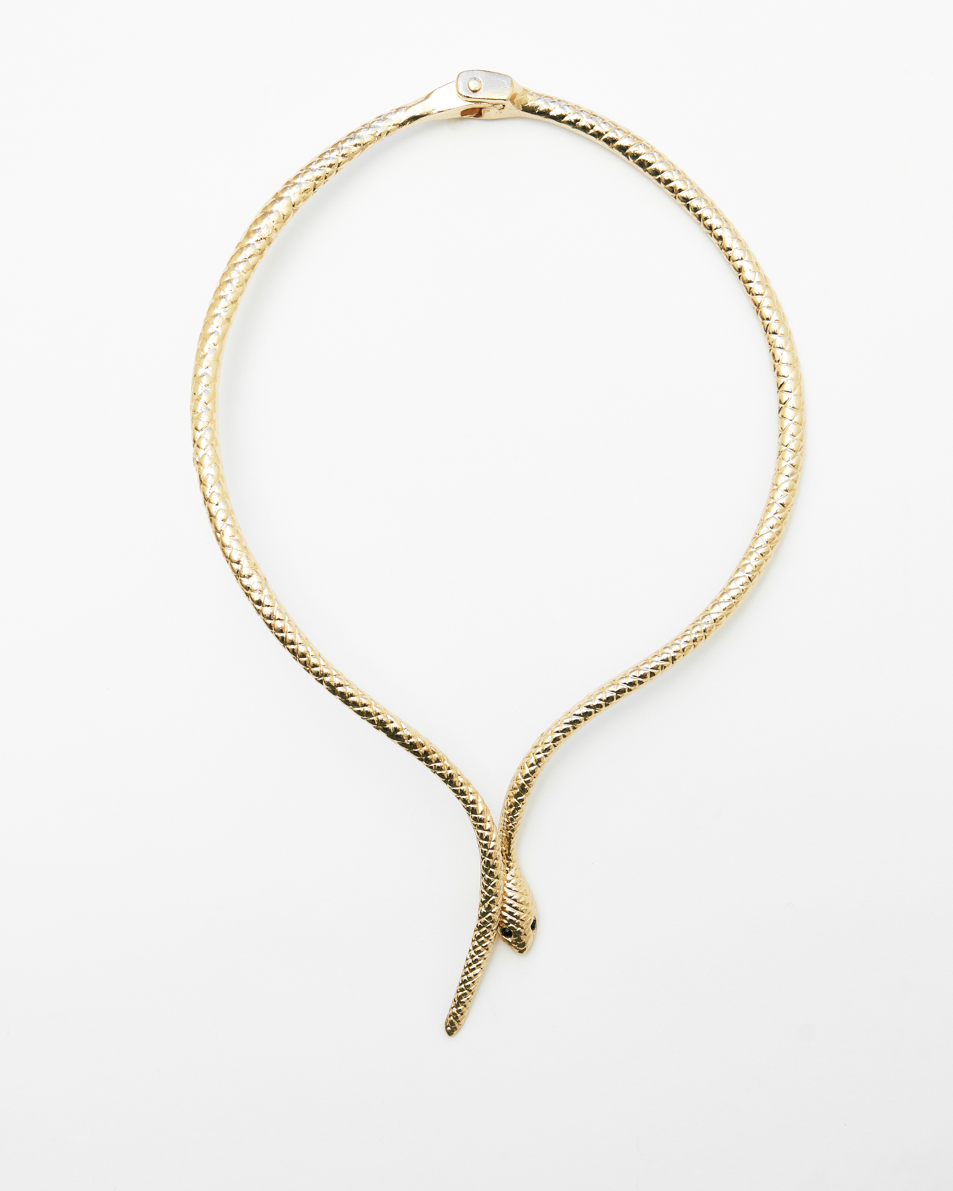Колье-змея ручной работы из латуни с покрытием из 24-каратного золота и кристаллами Swarovski.