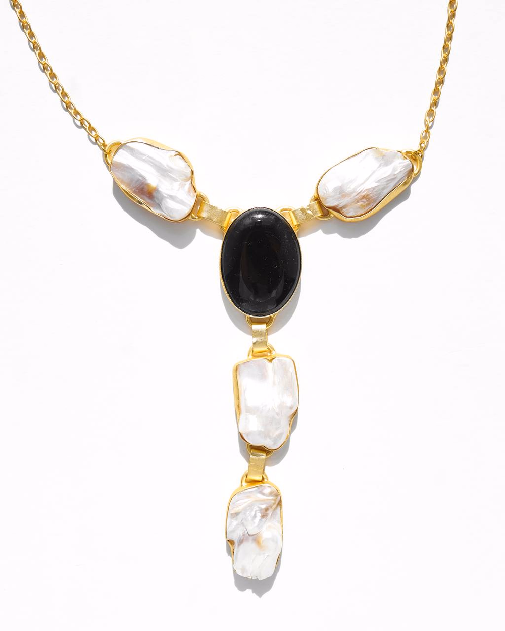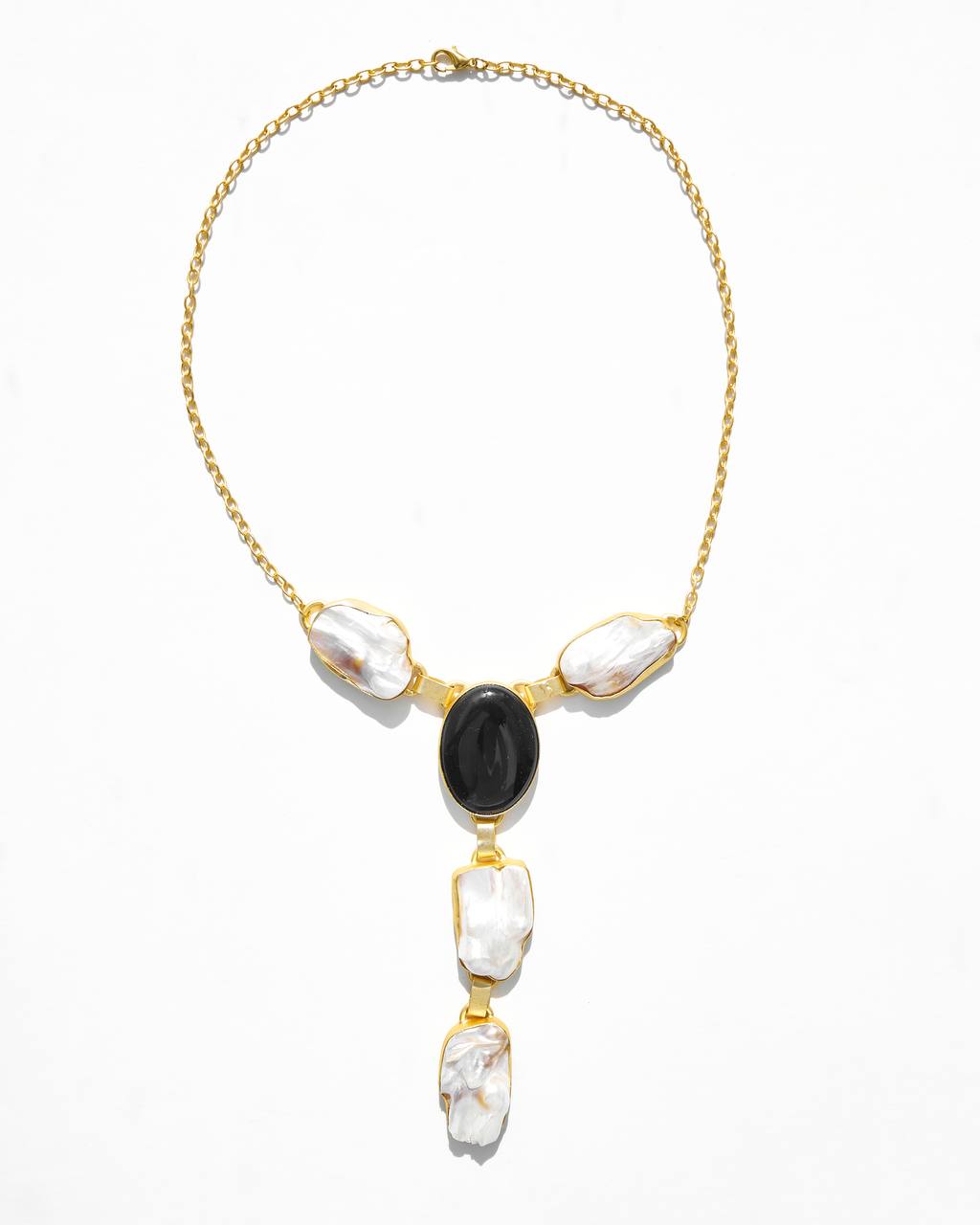 Латунь, матовое золото 24к, оникс, барочный жемчуг