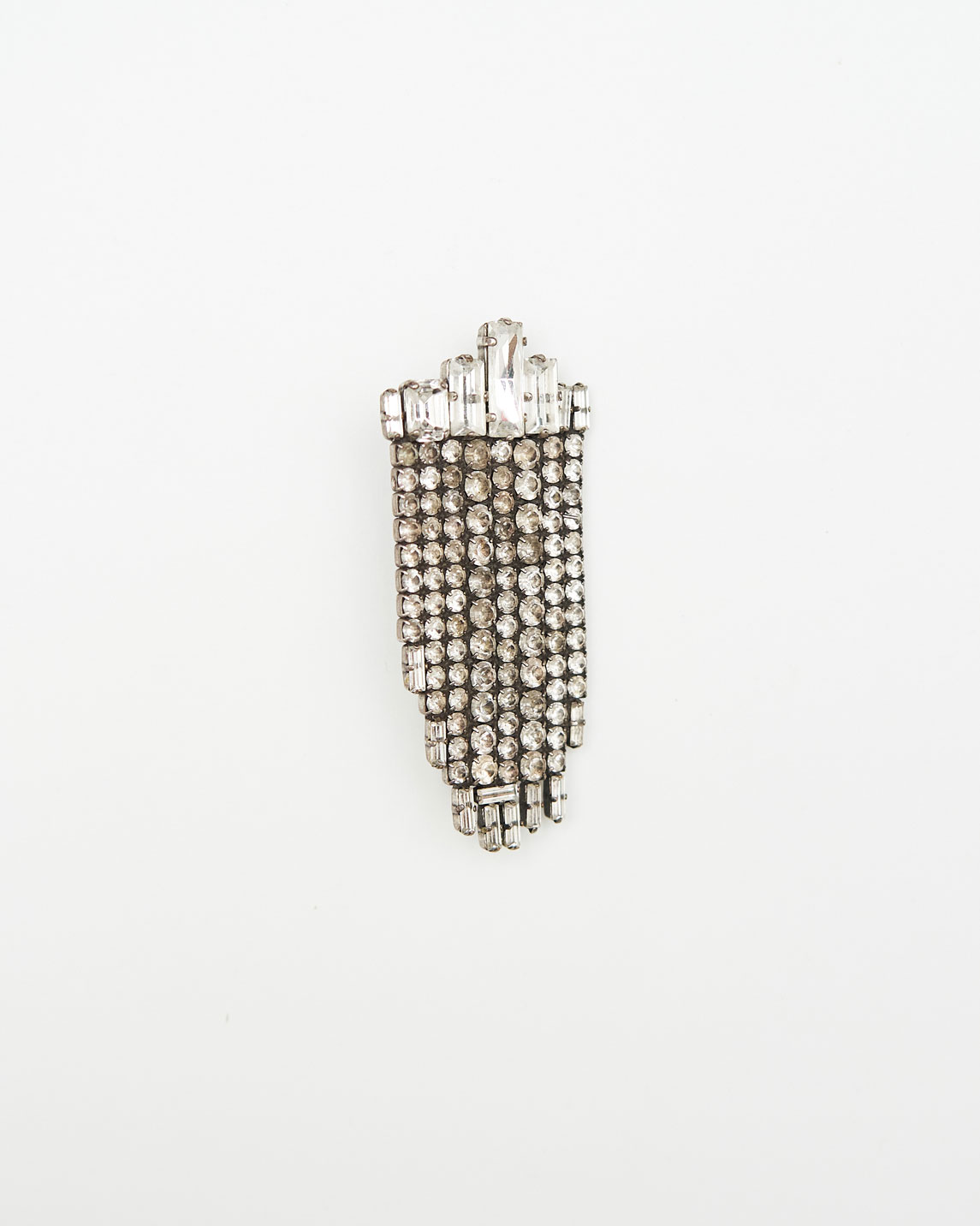 Моноклипса ручной работы из латуни с покрытием из античного серебра и кристаллами Swarovski.