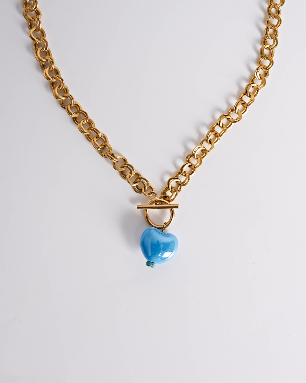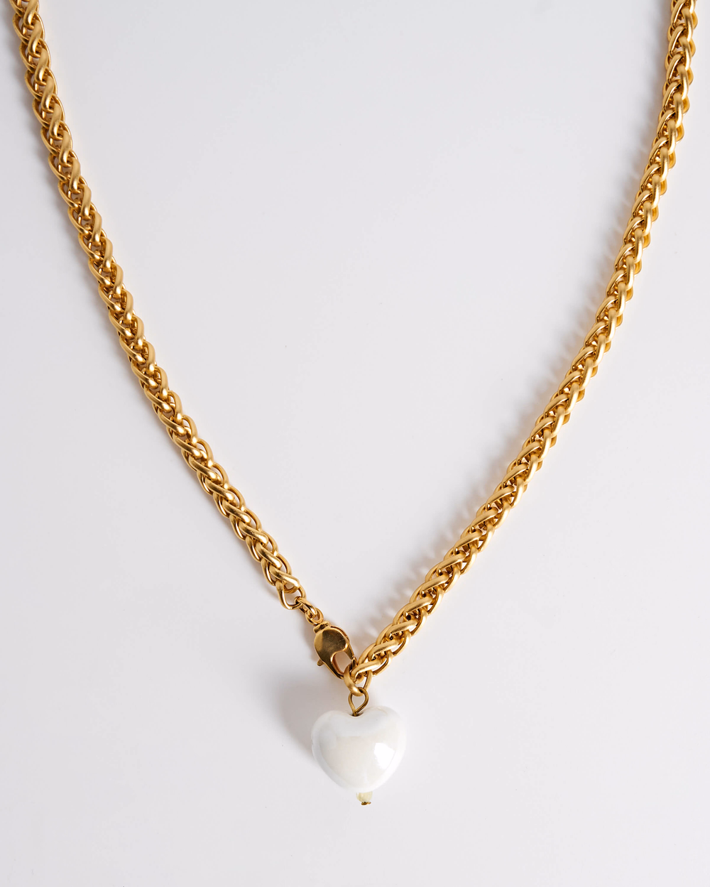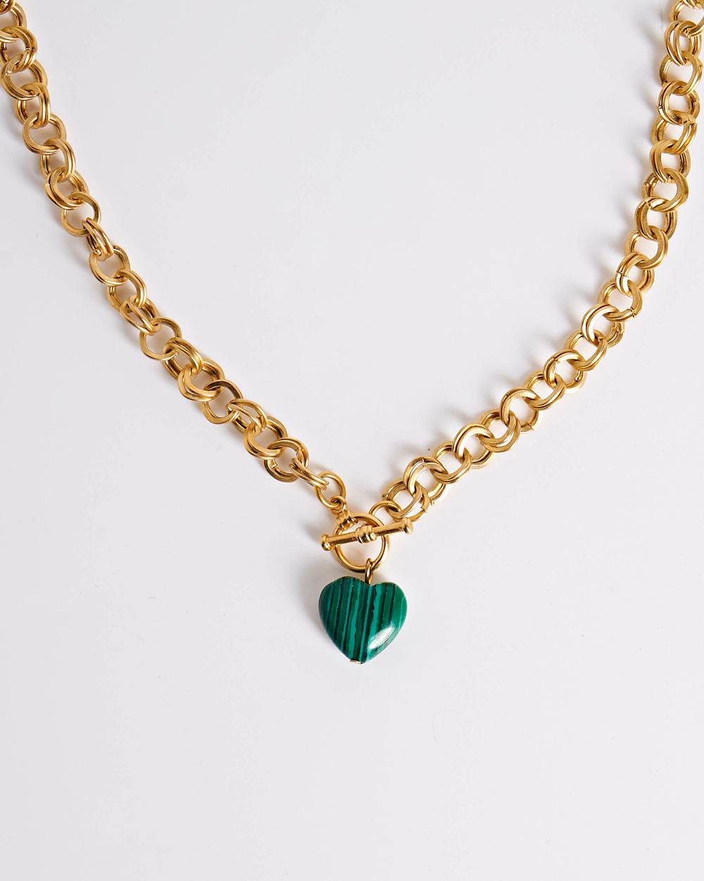 Подвеска с кулоном сердце Латунь, покрытие чистым золотом 24к Эмаль, малахит