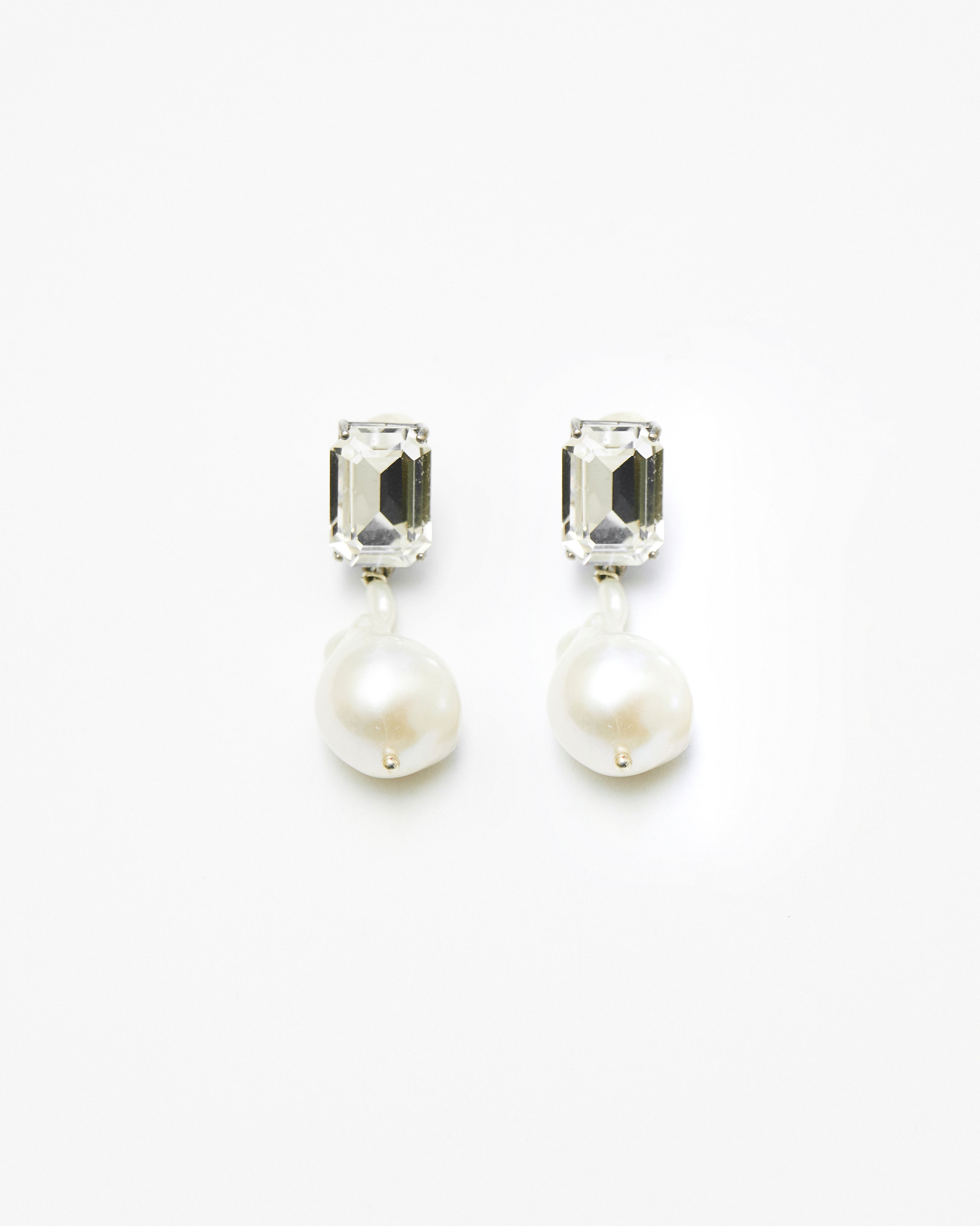 Серьги ручной работы из латуни с покрытием из античного серебра, кристаллами Swarovski и барочным жемчугом.